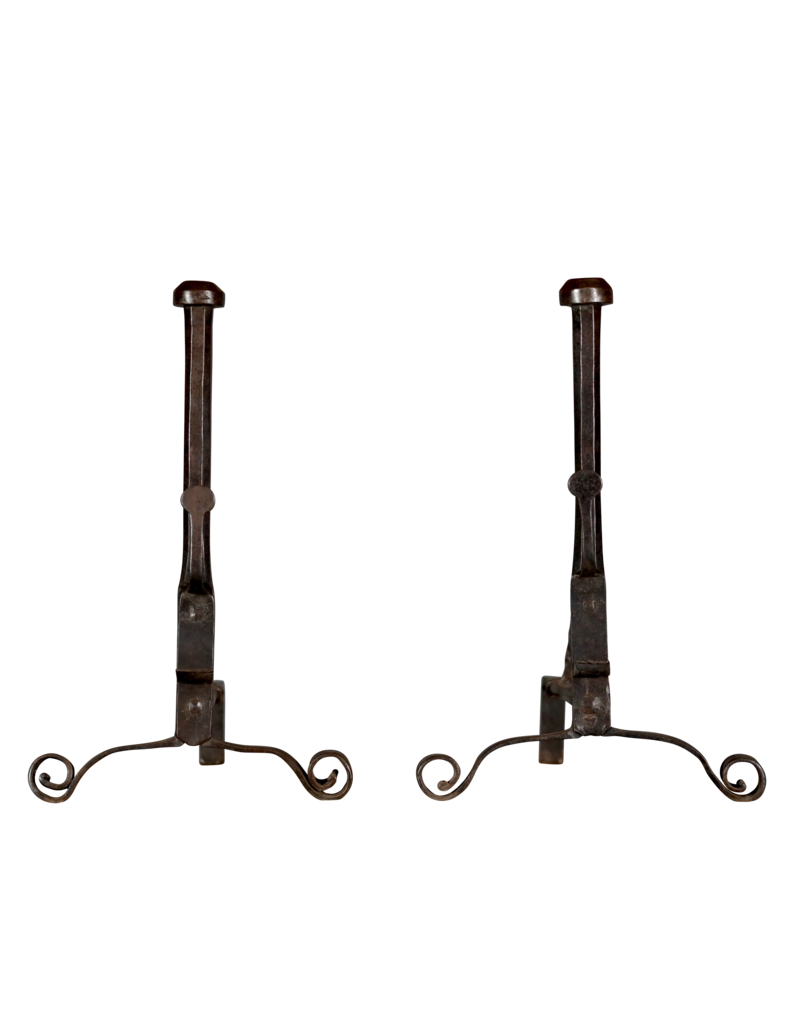 Solid one-piece forged andiron from the 17th century.Measurements:62 cm Height 24,41 Inch39 cm Width per piece 15,35 Inch62 cm Length 24,41 Inch14,8 Kg