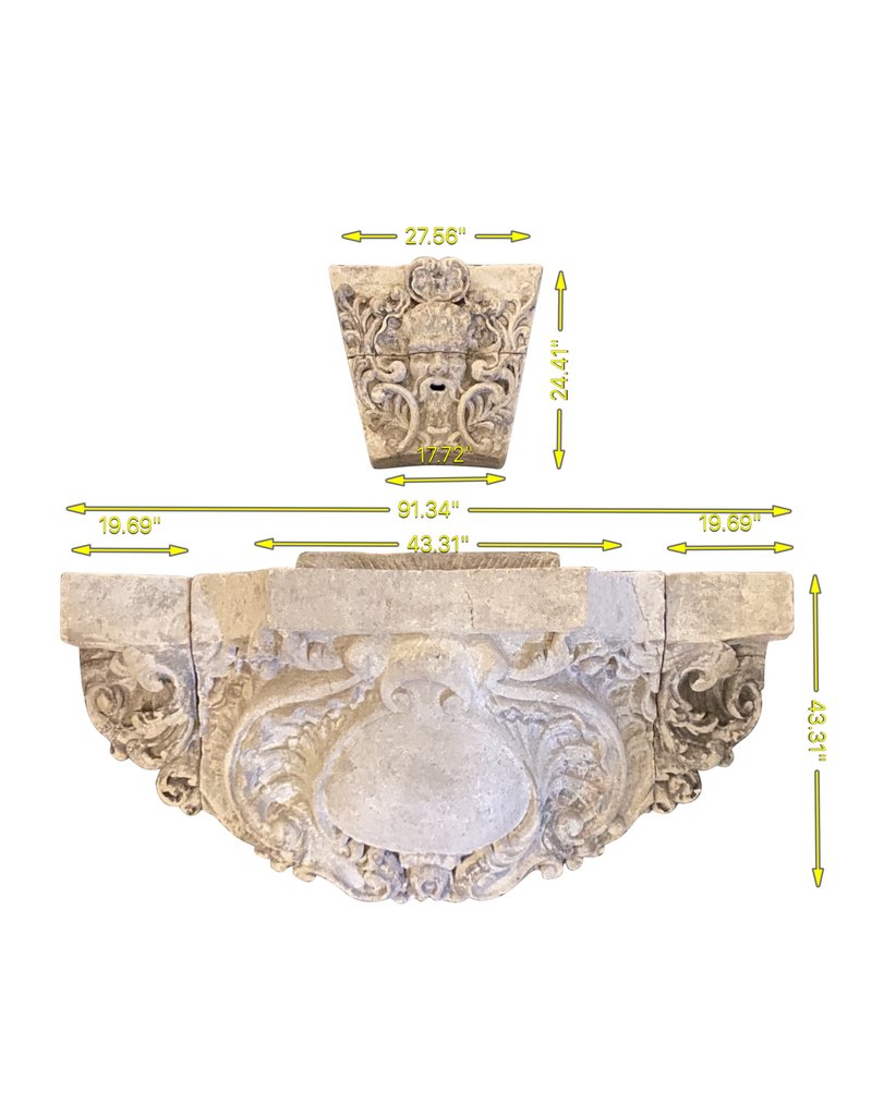 One of a kind French wall fountain in limestone. Typical Louis XIV style of the 19th century.
