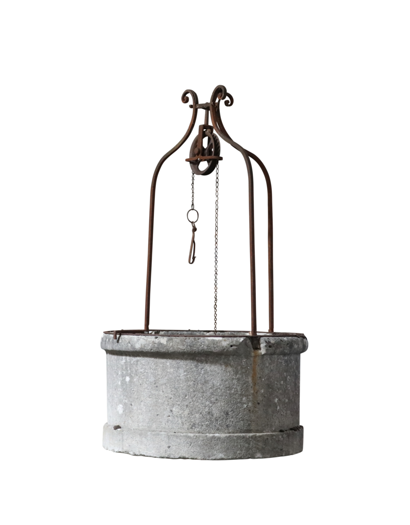 Una piedra de boca de pozo antigua francesa del siglo XVIII en piedra caliza. Este elemento arquitectónico original es el elemento perfecto para crear un paisaje a medida.