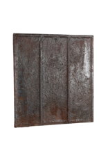 Deze gietijzeren haardplaat valt op door zijn eenvoud, met een minimalistisch ontwerp met twee verticale richels die de plaat in drie delen verdelen.