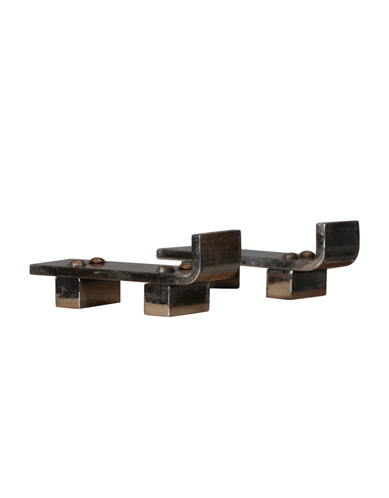 Massief en bijzonder paar art Deco verchroomde haardijzers van de bekkende designer Jacques Adnet.